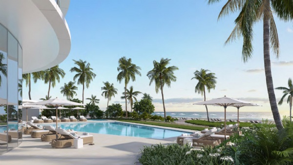 The luminous glass facade of this 275-foot tower reflects the dazzling beauty of the natural surroundings. Inside, every exquisite element is designed with impeccable attention to detail. The grand scale of these beachfront family villas—with their generous balconies, large windows and private elevators—creates discrete residences.