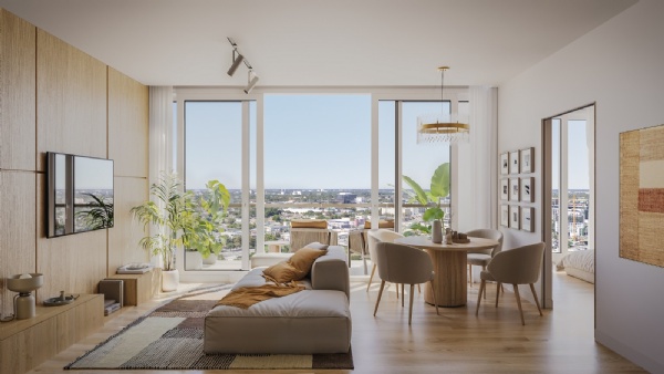 • Penthouse options with 20-foot double-height living rooms, rooftop pools, and gardens