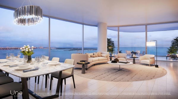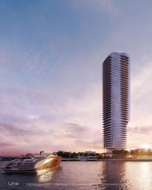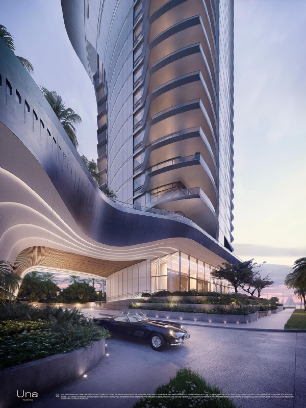 Designed by Adrian Smith + Gordon Gill Architecture, Una takes its inspiration from the elegant shapes and materials of classic yacht design. Instantly recognizable by the sweeping curve of its dramatic silhouette, the building’s glass surface brilliantly reflects the dazzling sunlight, while the floor-to-ceiling windows take advantage of a coveted setting on Biscayne Bay. With lush gardens designed by Enzo Enea, extensive amenities such as the spa and gym, elegantly envisioned by the chairman of Aman, private boat slips, and easy access to Coconut Grove, Downtown, Brickell, Miami International Airport and the beaches of Key Biscayne, Una is an exemplar for Miami living.
